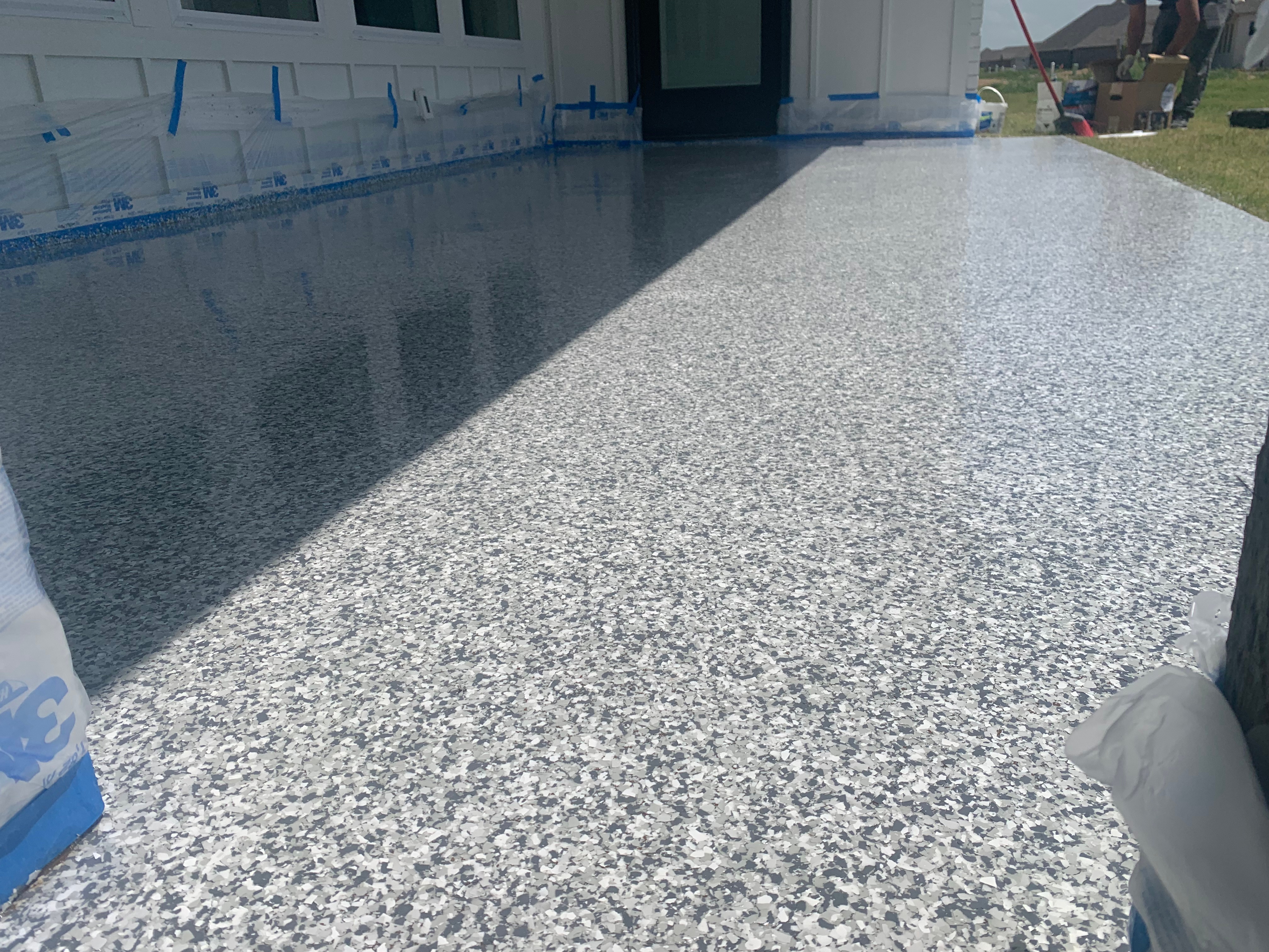 We have perform garage, living room and man caves in all types of homes all over Oklahoma and Texas. From broadcasting confetti to metalic resin floors we do it all. Majority of the jobs tend to be garages and barn garages this adds character and longevity to the floor.